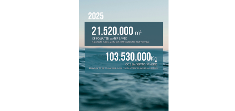 ►Thanks to its technologies, more than 21.5 million cubic meters of contaminated water and over 103 million kilograms of CO₂ were avoided in 2025.