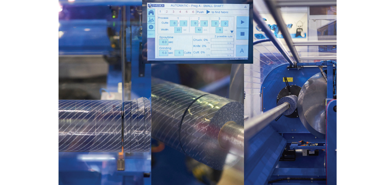 Svegea’s fully automatic FA 350 roll slitting machine meanwhile addresses a wider range of needs for roll conversion within the technical textiles sector, combining high capacity with very low power consumption and providing extremely accurate cutting precision. Capable of cutting both knitted and woven fabrics – including those produced from a wide range of technical fibres – it can accommodate different shaft sizes and is fully electronically controlled with servo motors. The touchscreen interface has recently been redesigned and expanded with new functions, including automatic control of the knife surface speed during the cutting cycle, maintaining consistent cutting conditions as the roll diameter decreases for improved cutting quality and material handling.